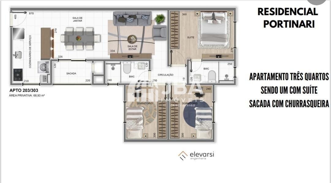 Unidades de 2 e 3 dormitórios e opções de cobertura com 3 dormitórios com 1 suíte e terraço. Todos os apartamentos com churrasqueira e vagas de garagem coberta e descoberta.