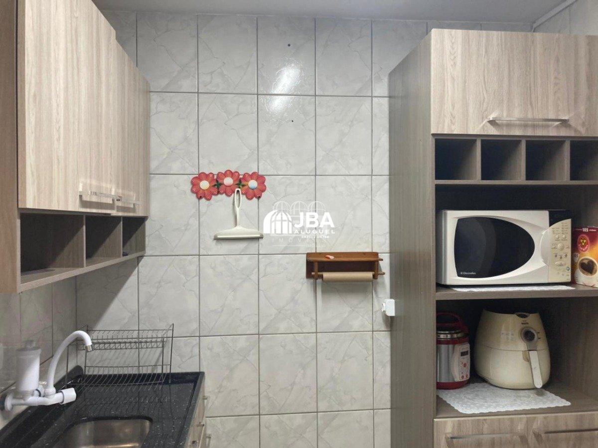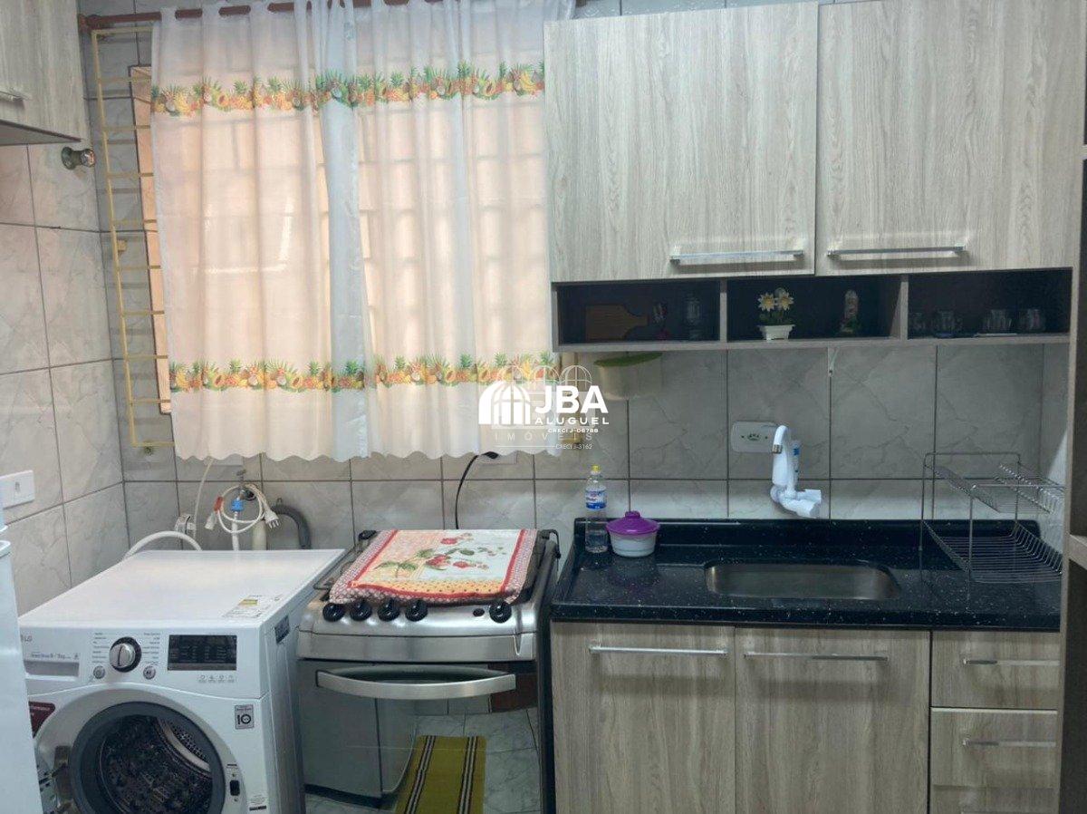 - Cozinha com móveis e fogão integrada com área de serviço;