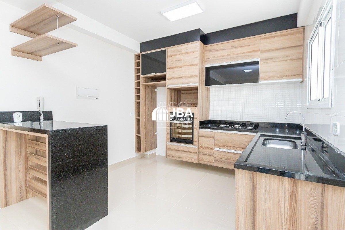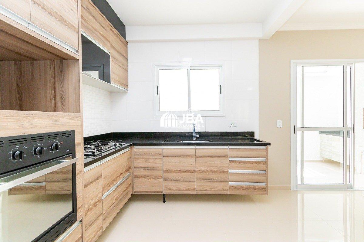 - Cozinha com móveis planejados, cooktop e forno elétrico;