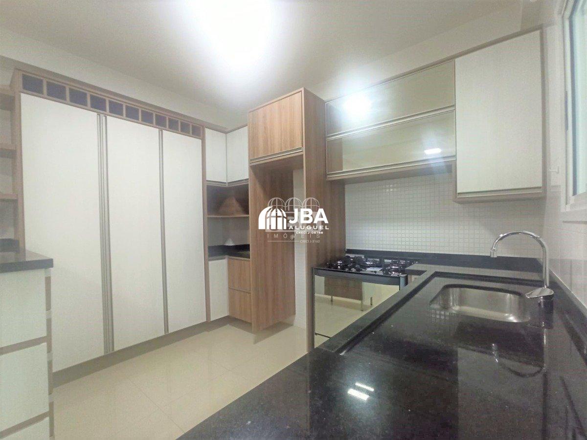 - Cozinha com móveis planejados, fogão e pia em granito;