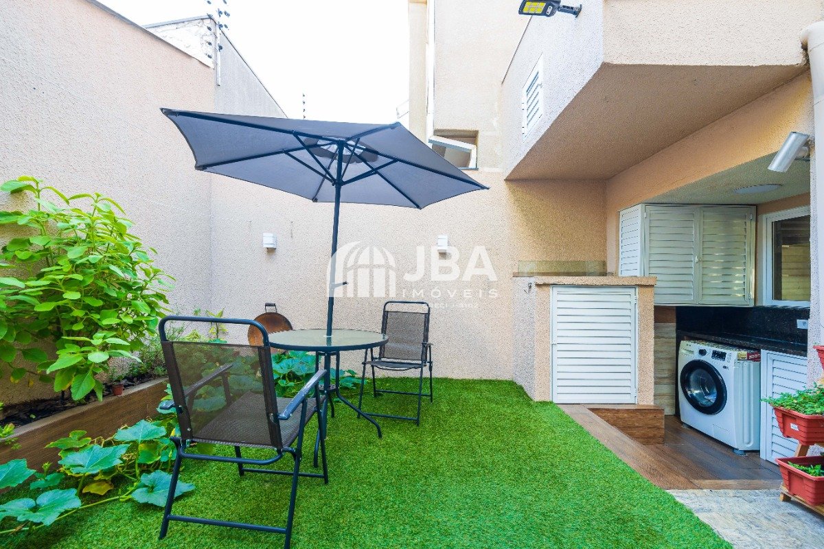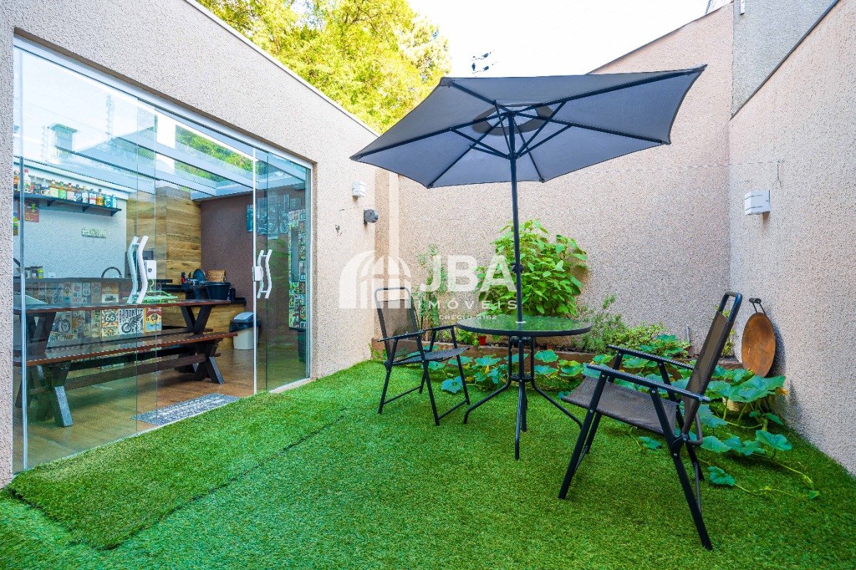 - Espaço verde nos fundos com mesa de vidro com guarda-sol;