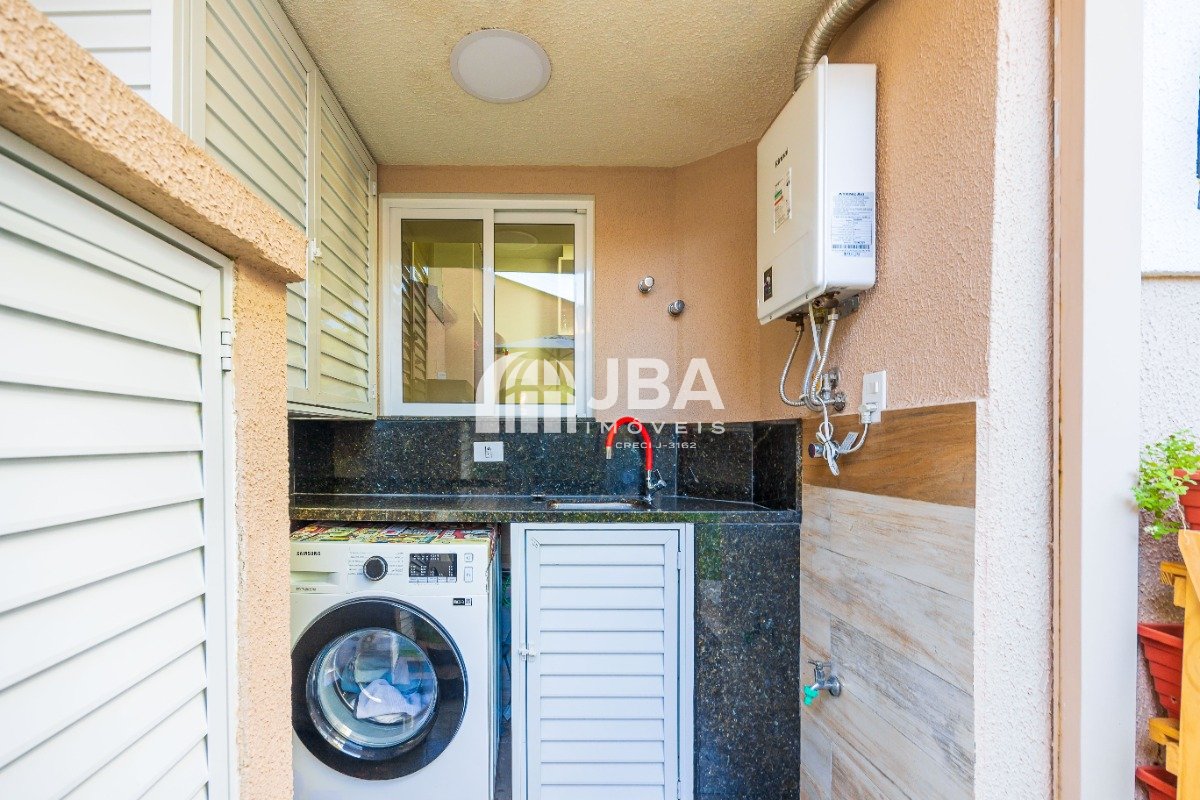- Lavanderia com armários, máquina lava e seca e aquecedor de água;