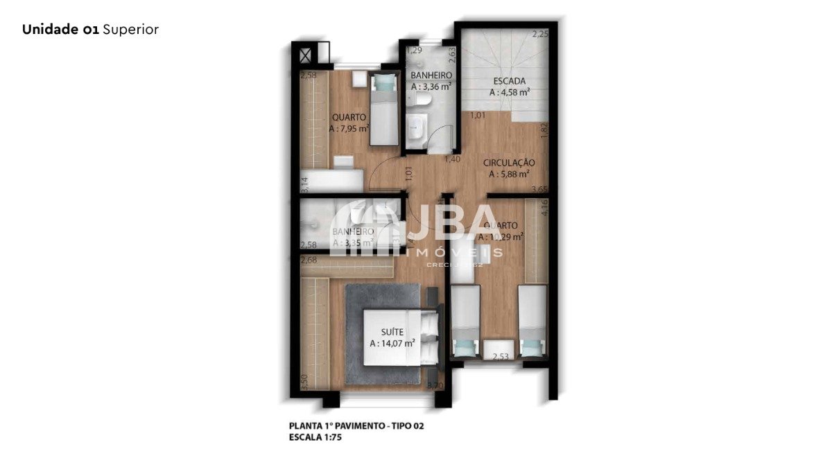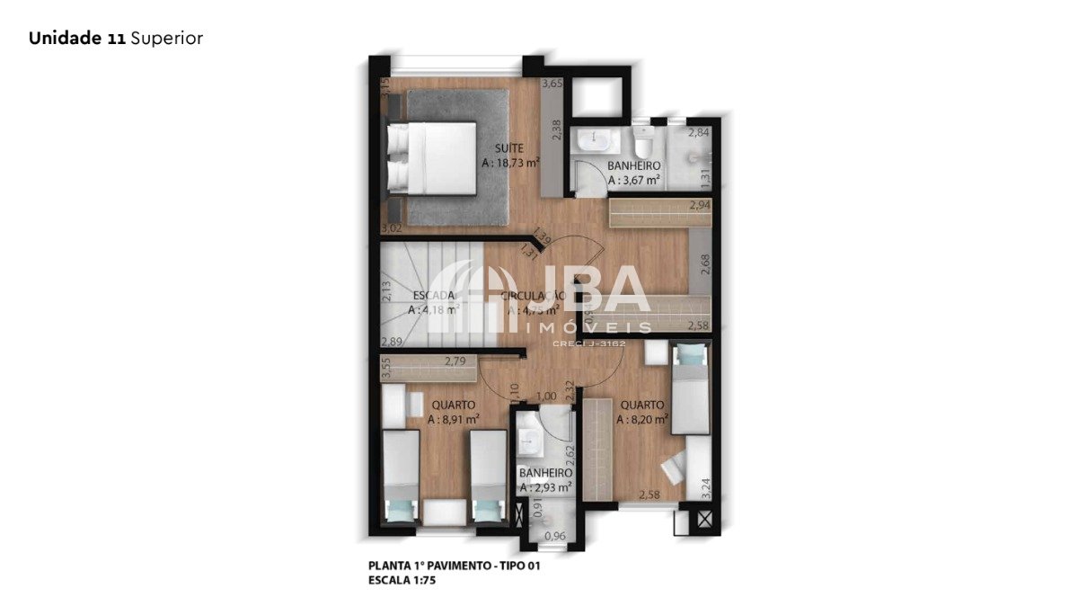 - 3 quartos amplos: Cada um projetado para oferecer o máximo de conforto e privacidade. O quarto principal conta com 1 suíte espetacular.