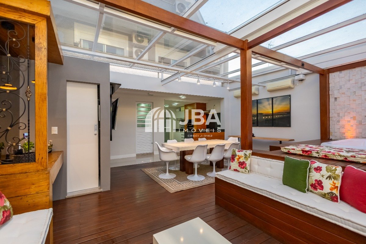 Comodidades do espaço externo, mesmo em dias chuvosos, graças ao teto retrátil.