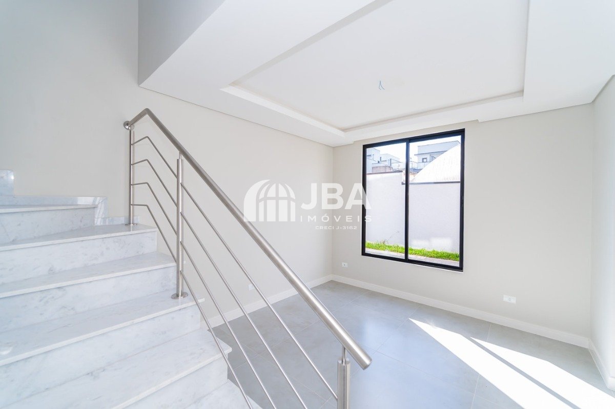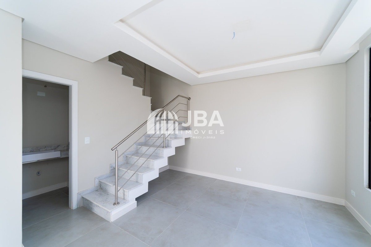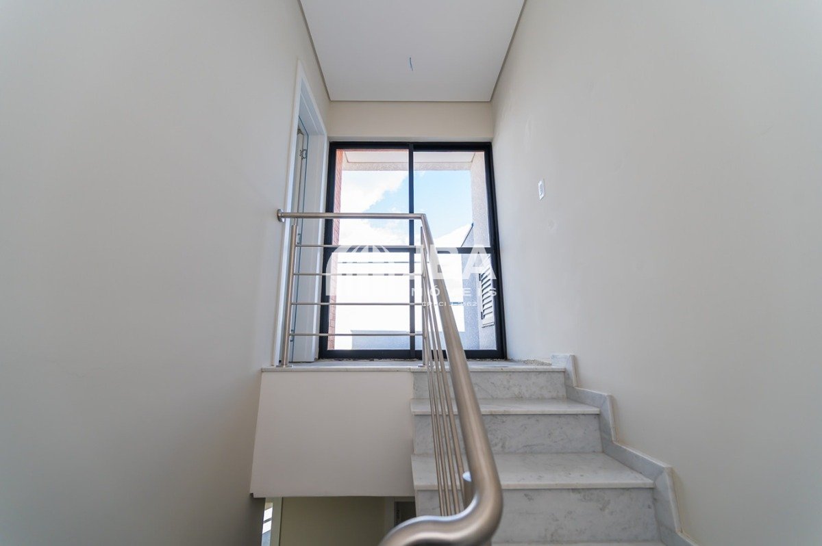 - Escada revestida em mármore travertino, agregando sofisticação.