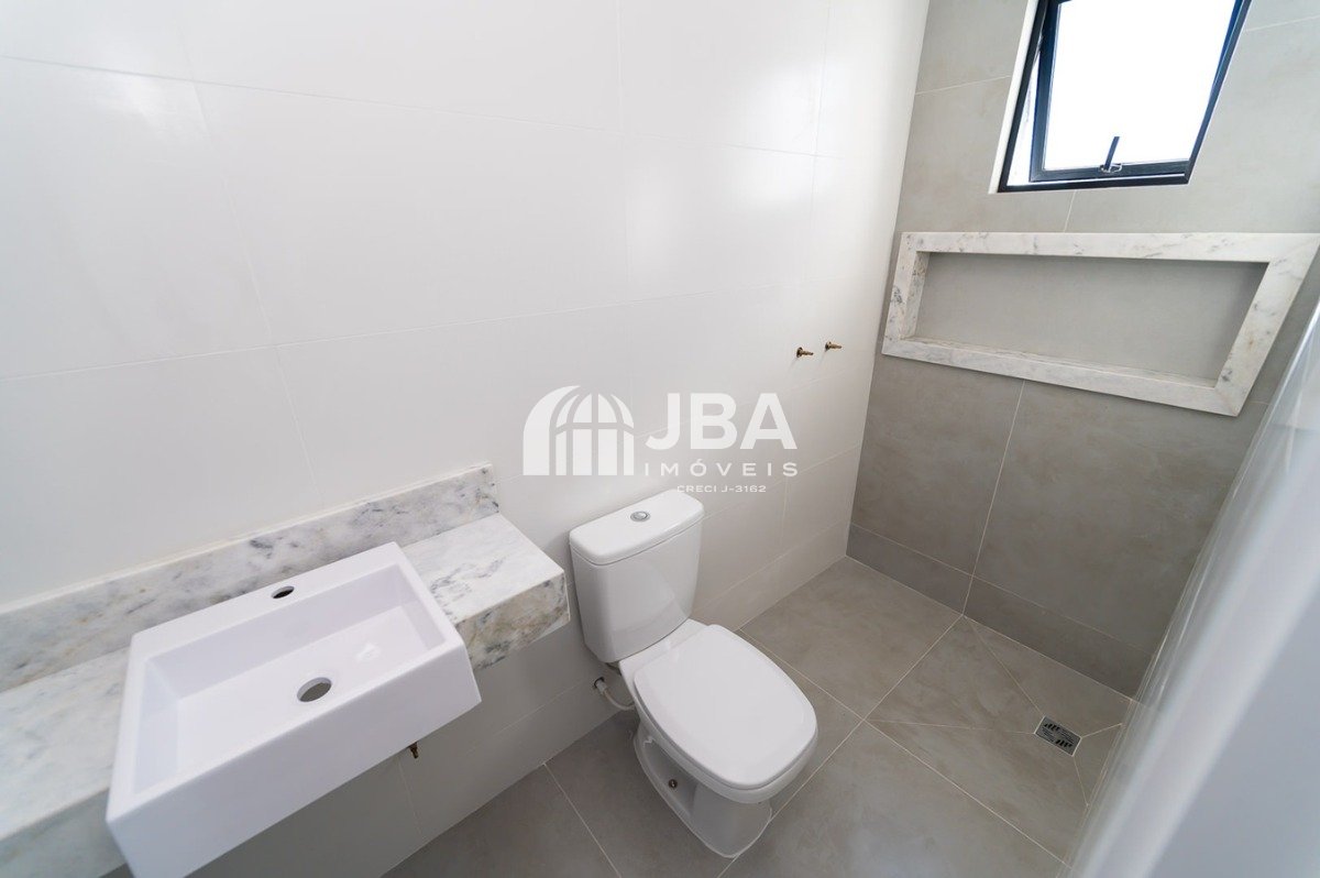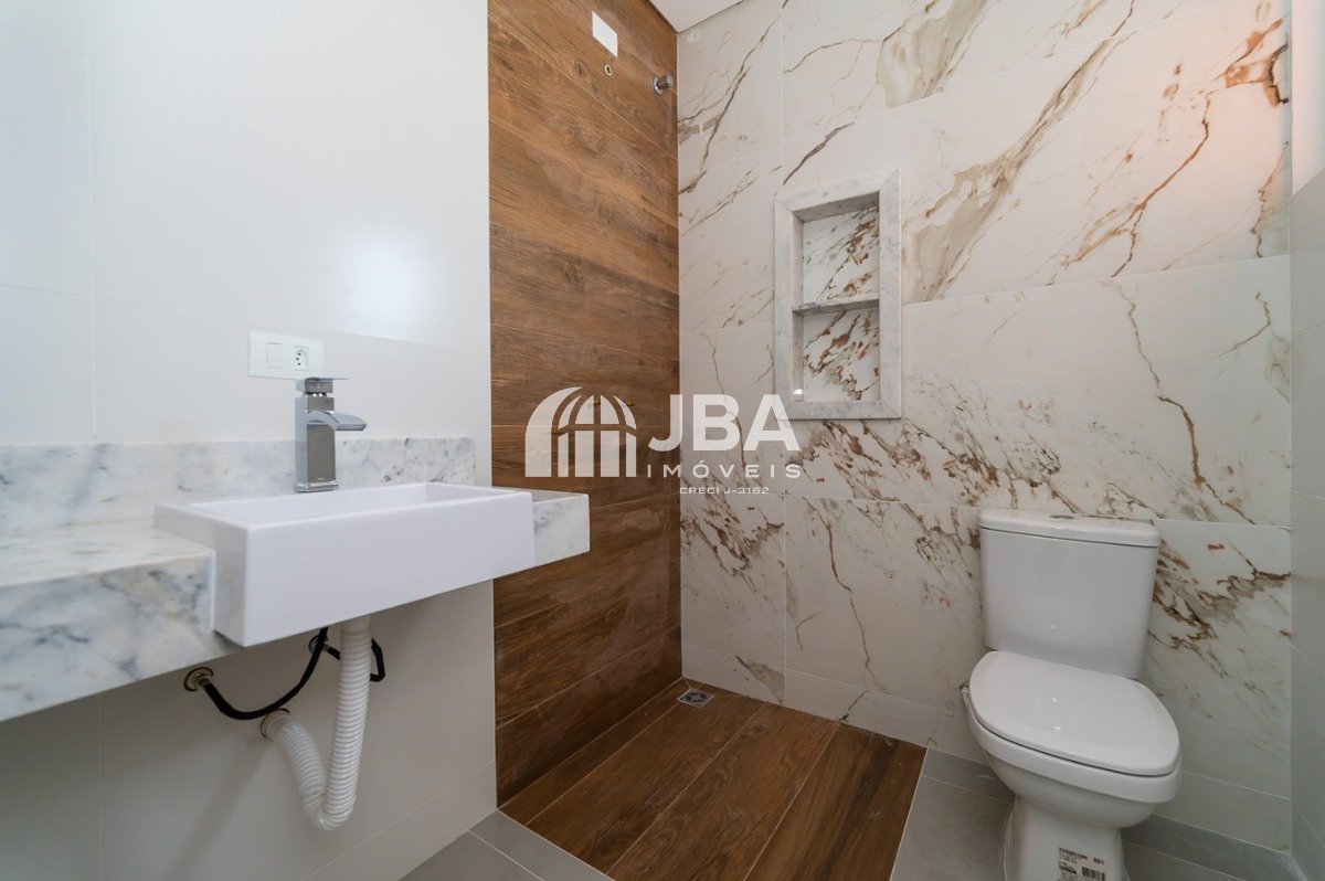 - Banheiro social elegante e funcional.