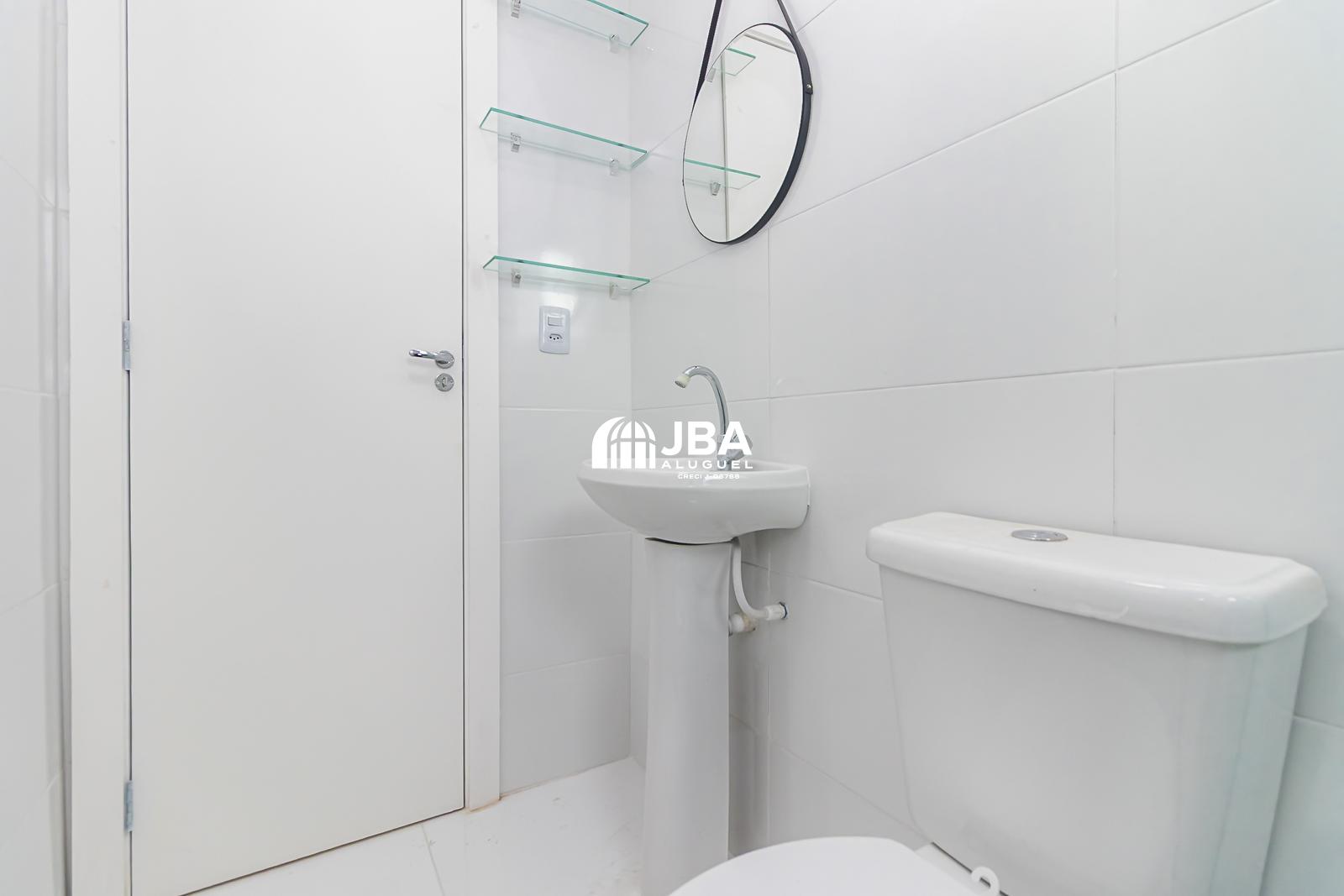 - Banheiro social moderno com nicho embutido;