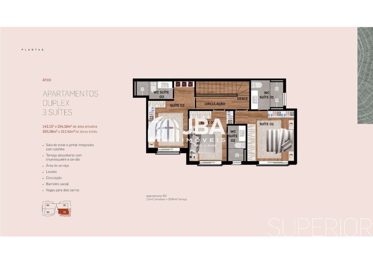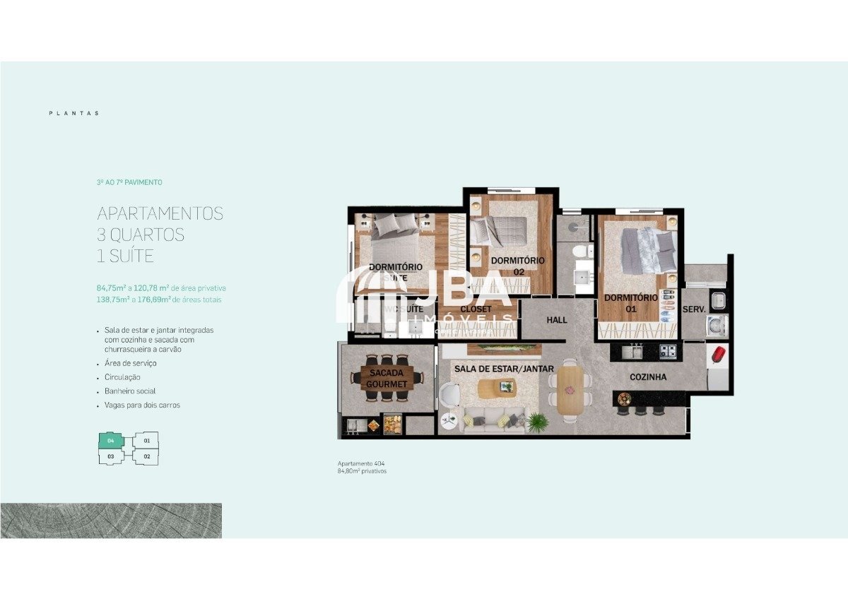 - Apartamentos de 3 quartos (sendo 1 suíte);