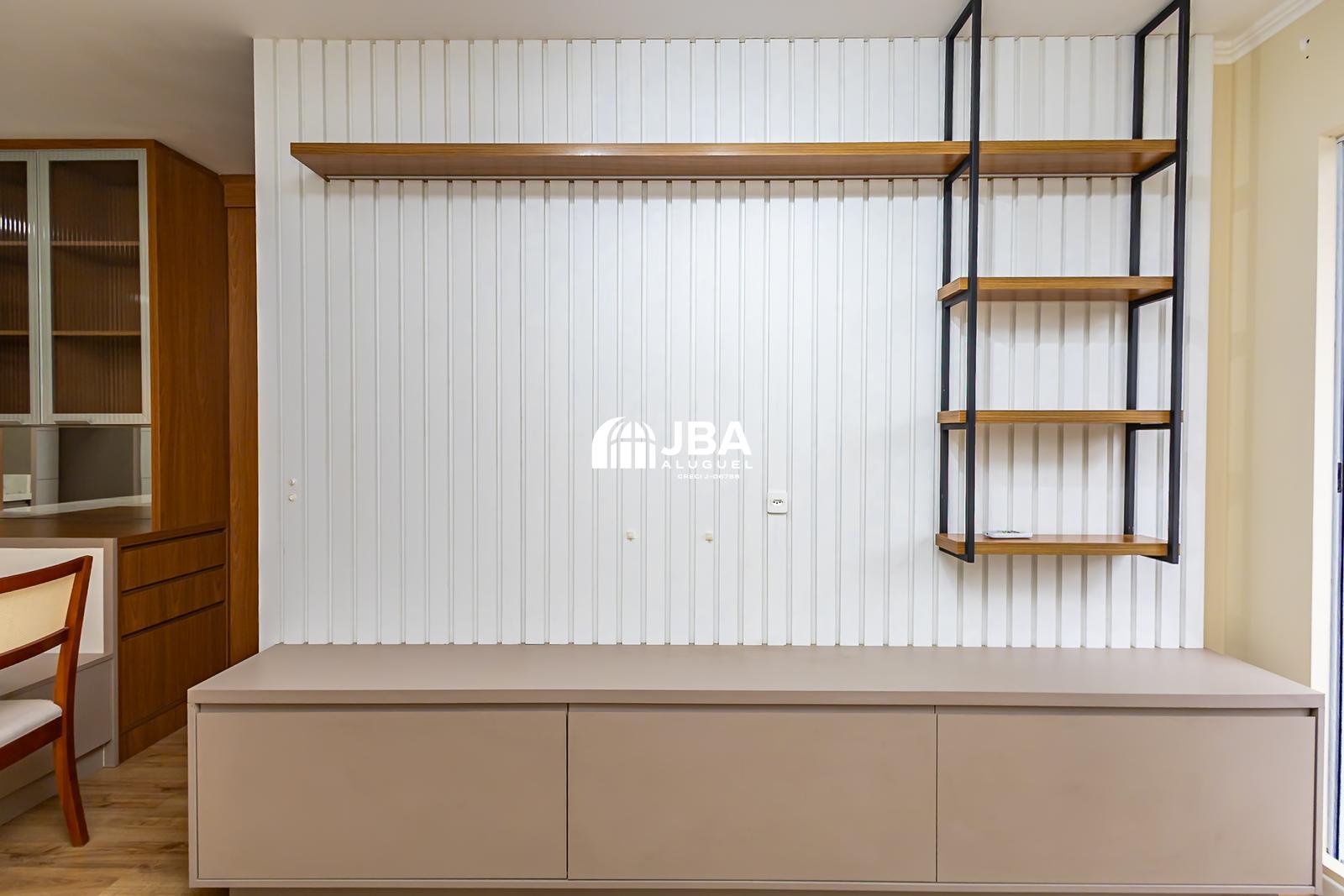 - Sala com armários planejados, painel de TV e ar-condicionado;