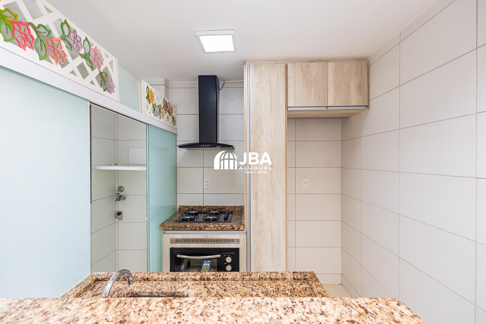 - Cozinha em conceito aberto, equipada com armários planejados e bancada em granito;